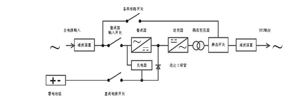 整流器、逆变器、隔离变压器、逆止二极管、静态开关等组成。